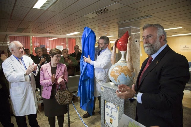 Sangre de Talavera, Francisco Rosell, destacó que con esta escultura también se pretende «dar un impulso a nuestra cerámica». La figura ha sido costeada íntegramente por el Ayuntamiento y por una subvención de Caja Rural de Castilla-La Mancha. En su intervención, Rosell realizó un llamamiento a la juventud. «El otro día estuvimos en la Universidad de Castilla-La Mancha y donaron 63 jóvenes, 34 de ellos lo hicieron por primera vez. Eso mismo es lo que buscamos. Una donación tiene que ser regular y no esperar a los acontecimientos porque a diario llegan al hospital enfermos y accidentados que necesitan sangre y plasma.Tras destacar que la joven Fátima Gómez fue la encargada de realizar el dibujo del logotipo de la gota de sangre que refleja dentro la cerámica de Talavera al igual que en su momento realizó el símbolo del 40 aniversario del hospital, el presidente de la Hermandad homenajeó a las personas que han realizado más donaciones como son Fermín Gómez, Antonia del Fresno y Francisco Trigueros. El gerente del Área Integrada de Talavera, José Luis Morillo, señaló que esta obra «simboliza la solidaridad de las personas que, de manera altruista, están donando vida. En lo que va de año, el Banco de Sangre de Talavera ha realizado 1.276 donaciones de las cuáles 829 han sido dentro del hospital y el resto en los pueblos de la comarca. Del total, 214 han donado por primera vez y ese es un aspecto muy importante. Además, Morillo destacó cuáles son los requisitos para poder donar: personas con edades comprendidas entre los 18 y los 65 años, con un peso superior a los 50 kilos y con buen estado de salud. Los hombres pueden hacerlo cada tres meses y las mujeres cada cuatro. «Actualmente contamos con 200 donantes nuevos que son en su mayoría jóvenes y eso asegura con ellos una relación a largo plazo», señaló.